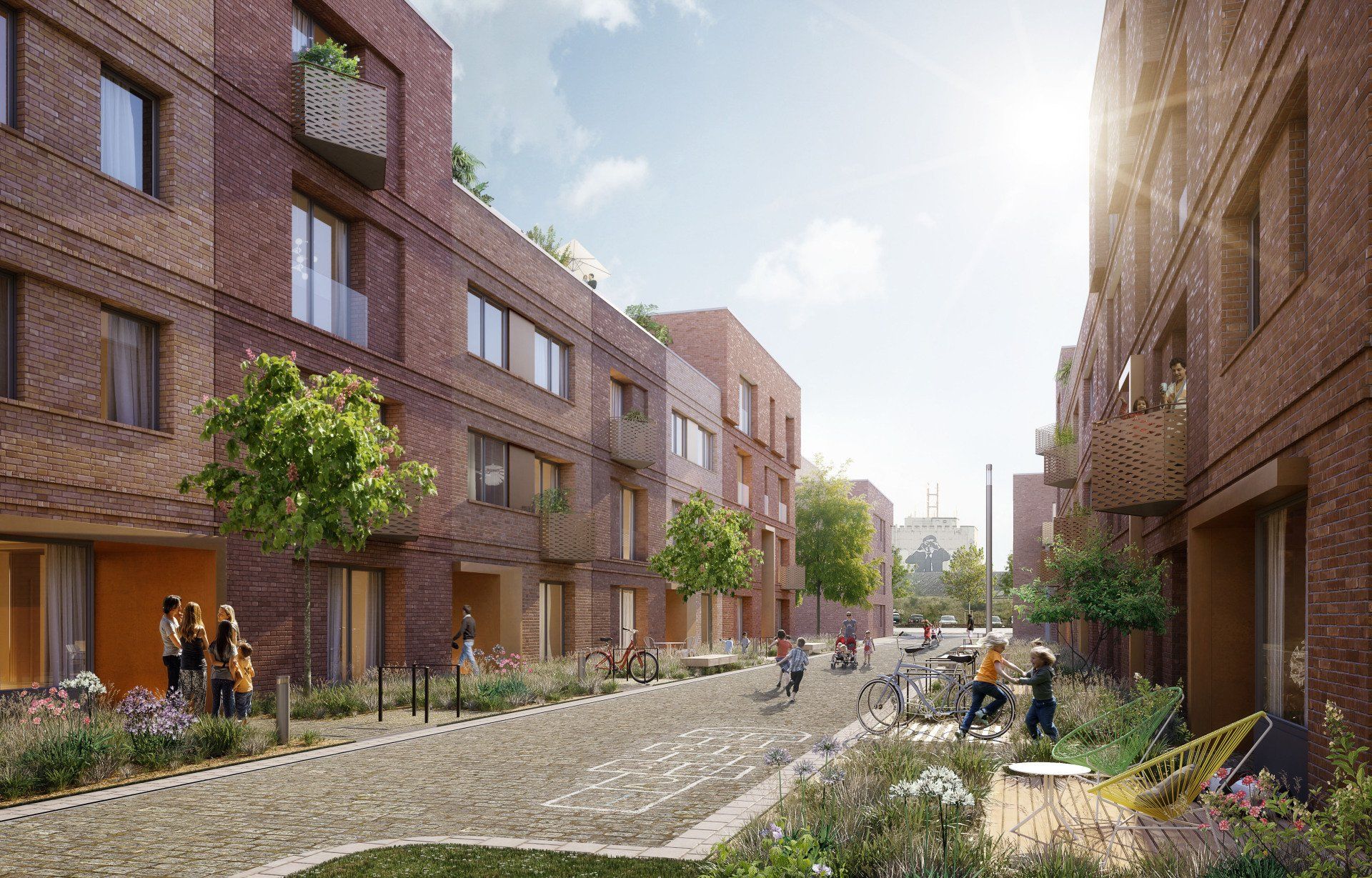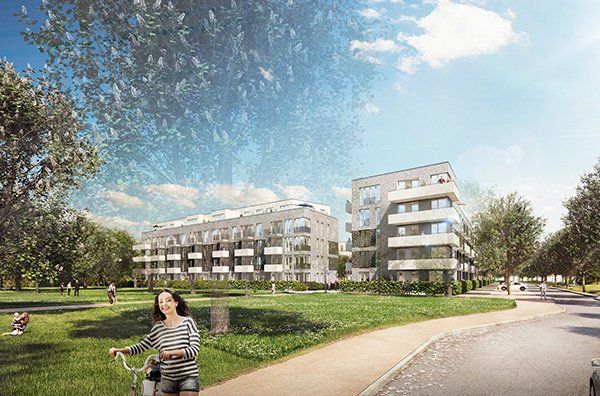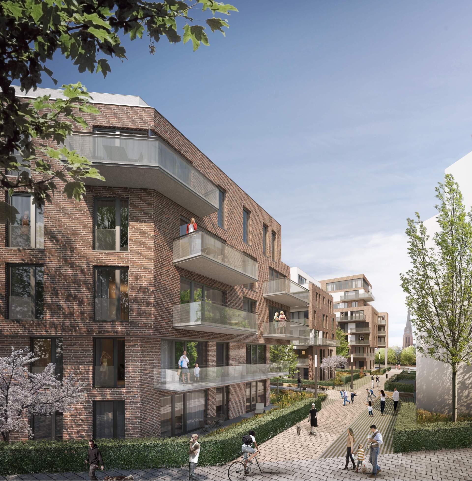 Auf einem ehemaligen Autohausgelände entstehen 232 moderne und praktisch ausgestattete Wohneinheiten, die sich auf 15 Wohngebäuden mit Tiefgarage und einer Kita verteilen.
