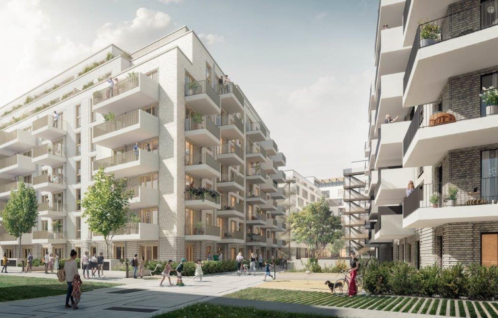 Auf der ehemaligen Brachfläche zwischen Harkortstraße und den ICE-Gleisen entstehen zunächst ca.1.600 Wohnungen,