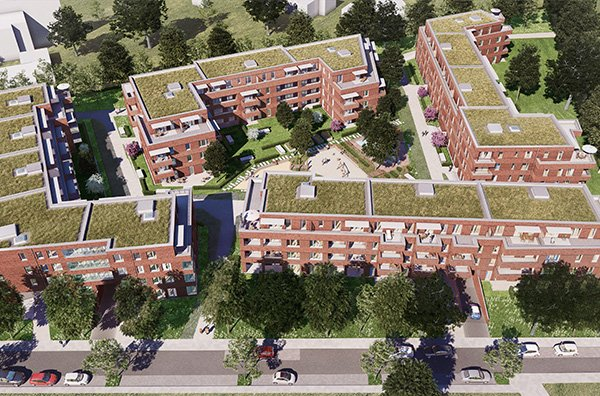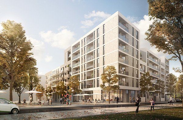 Auf einem ehemaligen Autohausgelände entstehen 232 moderne und praktisch ausgestattete Wohneinheiten, die sich auf 15 Wohngebäuden mit Tiefgarage und einer Kita verteilen.